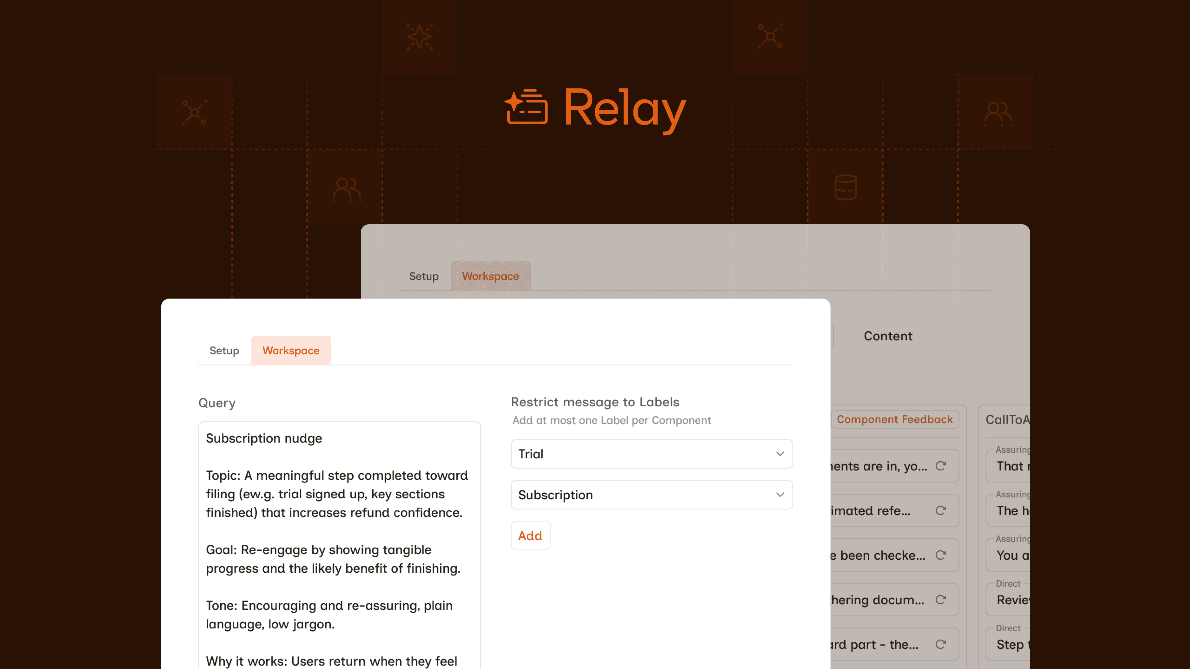 Relay turns content from something you write and approve into something you design and evaluate.