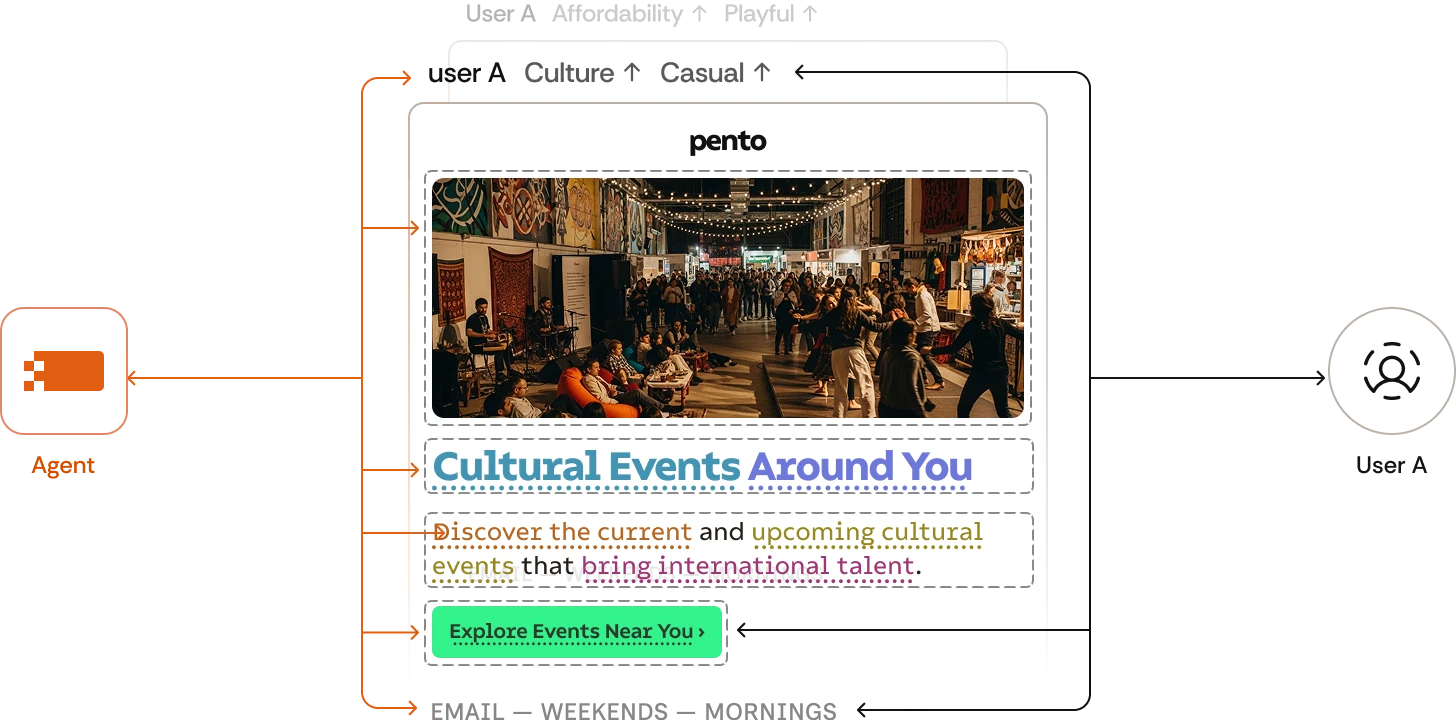 Agents learn each person’s unique mix of content, channel, timing, and even preferred recommender system — tuning every experience to the individual.