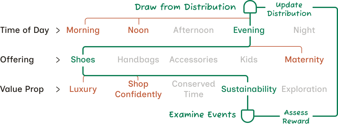 Balance exploration and exploitation by sampling from experience-based probability distributions, guiding each decision under uncertainty in real time.