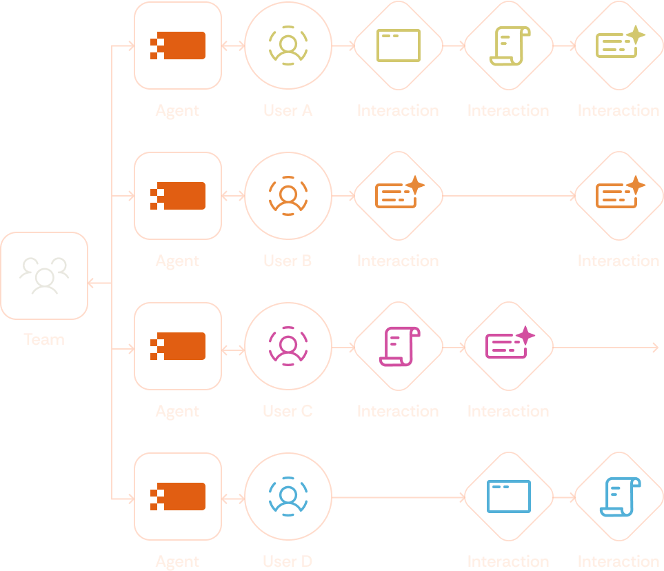 Agentic infrastructure assigns one dedicated agent to every customer who pays attention to every button click and page view, not just conversions or landing page activity. Each agent learns, adapts, and responds as a true extension of the brand team’s headcount.