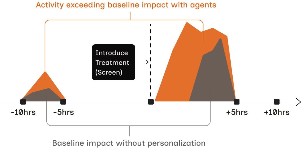 Agents estimate causal impact for every individual interaction, not just aggregate outcomes. This lets data scientists separate correlation from causation, trace why specific interventions worked, and explore which behaviors most strongly drive change — enabling attribution in a cleaner, de-noised data environment.